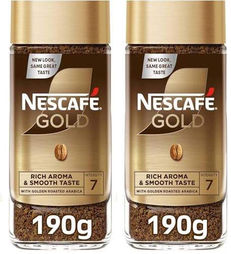 Nescafe - برطمان قهوة جولد سريعة التحضير بخلطة حبوب محمصة غامقة من نسكافيه، 190 جرام (عبوة من قطعتين)