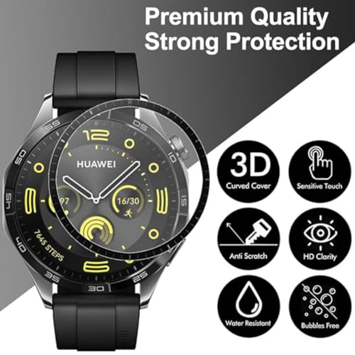 NESLIN - واقي شاشة ثلاثي الابعاد من نيسلين متوافق مع ساعة هواوي GT4 2023، طبقة حماية شفافة عالية الدقة HD خالية من الفقاعات من الزجاج المقوى متوافقة مع ساعة هواوي GT4 2023 مضادة للخدش (41 ملم)