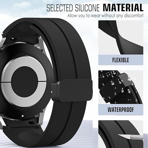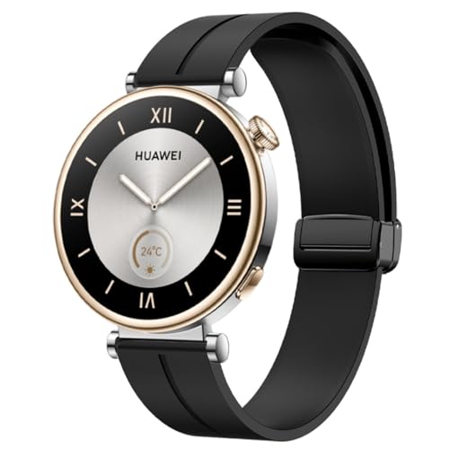 NESLIN - سوار مغناطيسي من نيسلين متوافق مع ساعة هواوي GT4 41 ملم 2023، بديل إبزيم مغناطيسي على شكل D، سوار سييكون جديد 18 ملم للنساء والرجال (أسود)