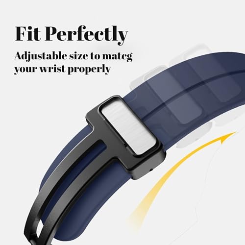 - 【خامة فاخرة】: مصنوع من مادة السيليكون الناعمة عالية المرونة، سوار الساعة المقاوم للماء لطيف و لا يسبب تهيج للبشرة وخفيف الوزن وسهل التنظيف، مما يضمن تجربة ارتداء آمنة، و مريحة