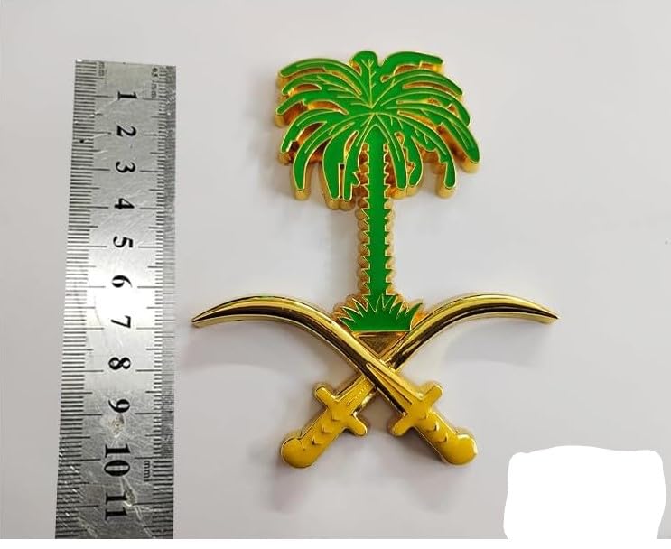 Generic - ملصق ستيكر علامة شعار سيارة ثلاثى الابعاد بديل اساسى لشارة السيارة--(سيفين ونخلة ذهبى فى اخضر ، قطعة واحدة ، مقاس 10*8.5 سم ، كود: 977: 9514) من نسمه ستور