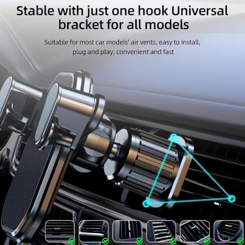 Generic - حامل موبايل ممتاز وعملي للغاية لفتحة تهوية السيارة قابل للتعديل وثابت يناسب جميع الموبايلات الذكية مع خطاف قفل أمان - لون أسود- من نسمه ستور