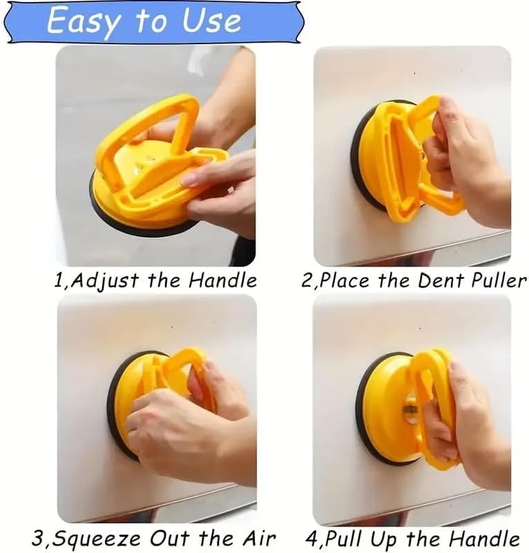 - ✅ يُستخدم المنتج على الأسطح النظيفة، والناعمة، والمسطحة، وغير المسامية، والجافة. سخن الجزء الذي به انبعاج بالماء الساخن أو بمجفف الشعر وقم باستخدام كوب الشفط بشكل جيد لتأثير أفضل.