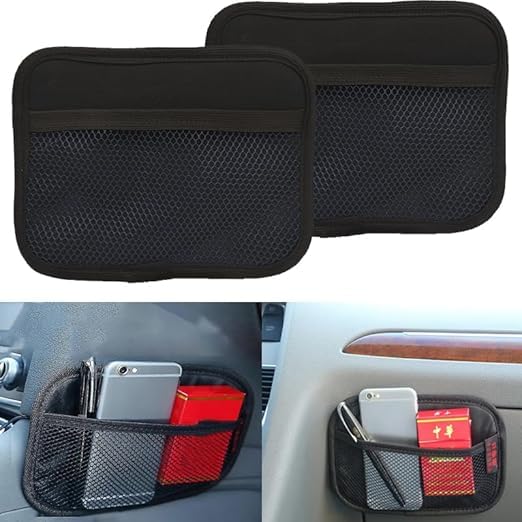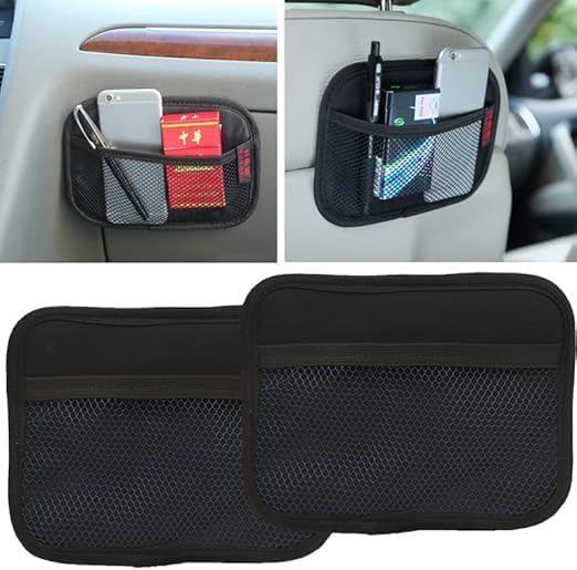 Generic - منظم تخزين السيارة بتصميم شبكة ، جيب منظم للسيارة بجانب المقعد او التابلوة --- يلصق بدبل فيس لحمل المحفظة والموبايل والمتعلقات الشخصية(2 قطعة اسود مستطيل 20- 14 سم ) من نسمه ستور