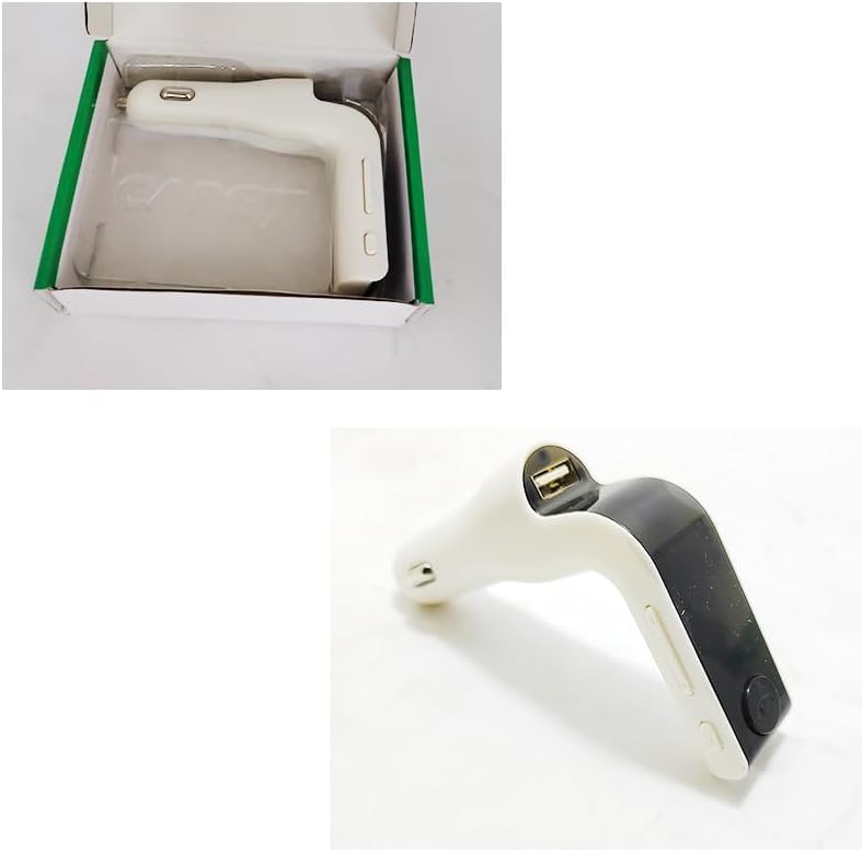 Generic - مجموعة السيارة المكونة من بلوتوث لاسلكي وجهاز ارسال راديو اف ام مشغل MP3 ستيريو للسيارة وجهاز ارسال FM و AUX بدون استخدام اليدين مع شحن بمنفذ USB - ابيض G7 - من نسمه ستور