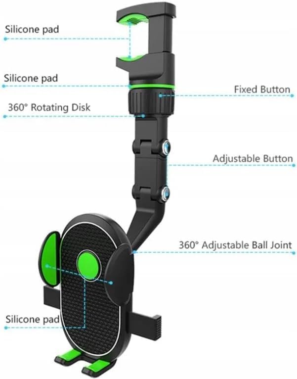 Generic - حامل موبايل يثبت في مراة الرؤية الخلفية في السيارة تصميم جديد بزاوية دوران 360 درجة، حامل للموبايل متعدد الوظائف بملائمة يونيفرسال يثبت في ظهر الكرسي( اخضر كود:902) من نسمه ستور