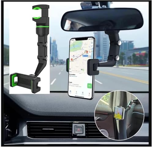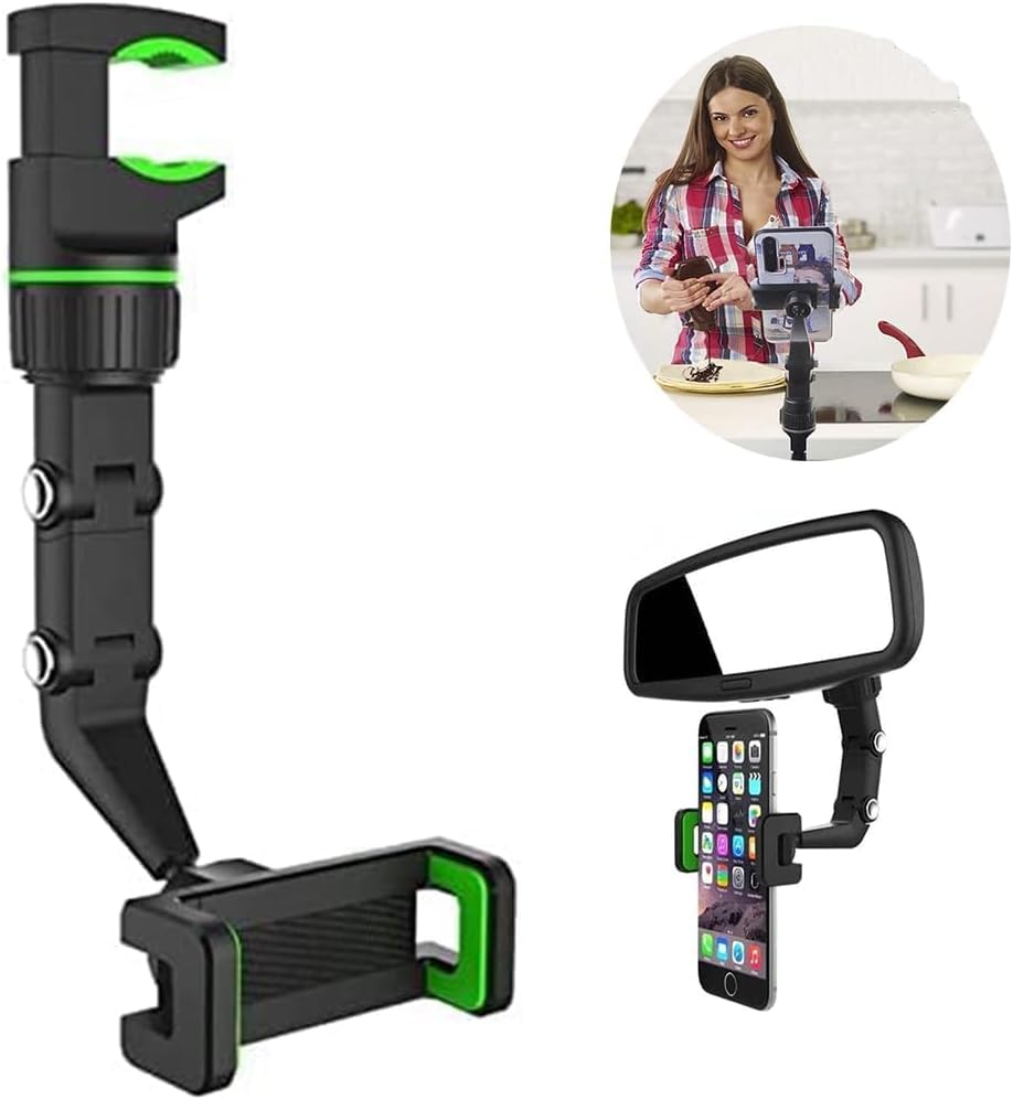 Generic - حامل موبايل يثبت علي مراية صالون السيارة جديد ومتعدد الوظائف عالمي قابل للسحب والدوران بزاوية 360 درجة لرؤية بشكل افضل للمقعد الخلفي/المكتب/( قطعه واحده اخضر) من نسمه ستور