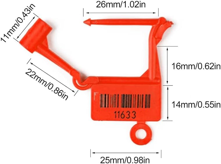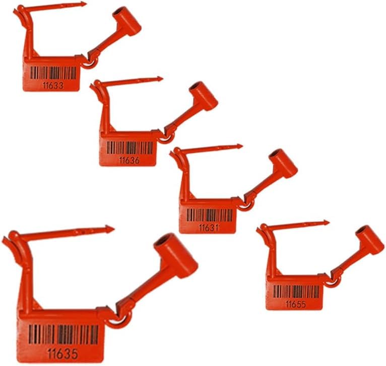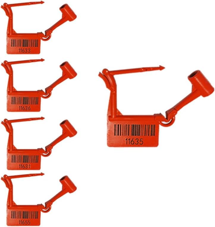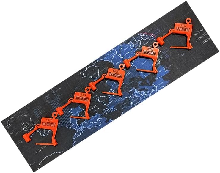 - ✅ أرقام تسلسلية فريدة: يتميز كل قفل أمان بلاستيكي برقم تسلسلي فريد محفور بالليزر على كل من عمود البرغي وآلية القفل لتوفير إمكانية التتبع والأمان بشكل أكبر