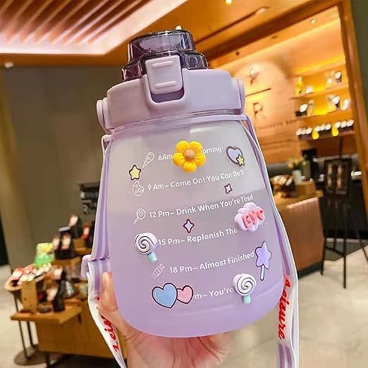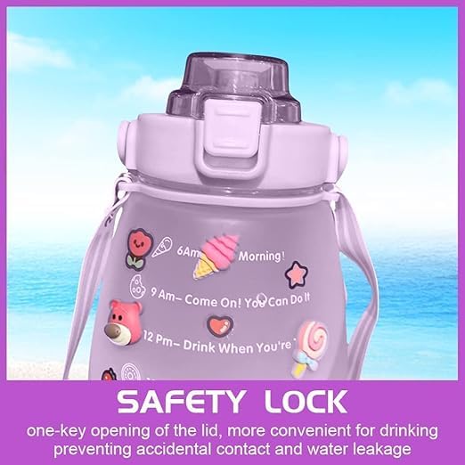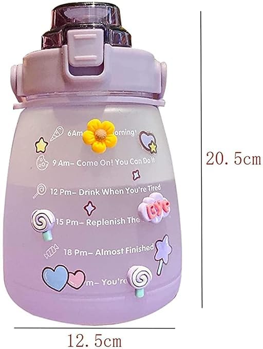 - تتميز هذه الزجاجة بطبعة مقياس زمني للتذكير بشرب الماء ما يجعلها ملائمة لمساعدتك على إكمال أهدافك في الوقت المحدد ووضع خطة يومية لشرب الماء، كما وتُمكنك من شرب الماء بانتظام للحفاظ على صحتك.