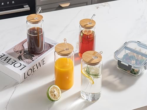 - جودة المادة: زجاج بوروسيليكات : غطاء خيزران مقاوم للصدمات والحرارة: شفاطات زجاجية طبيعية ومستدامة: صديقة للبيئة وأنيقة.