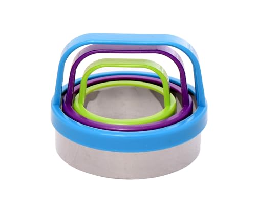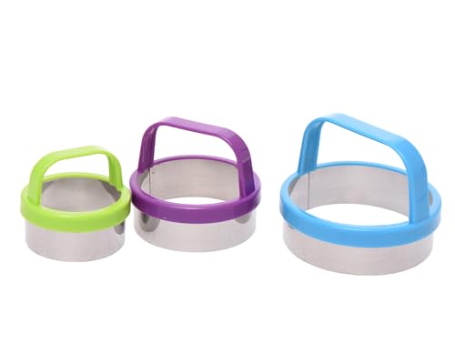Generic - طقم قطاعات كوكيز متداخلة، 3 أحجام، معدن بمقابض ملونة، أزرق وأرجواني وأخضر