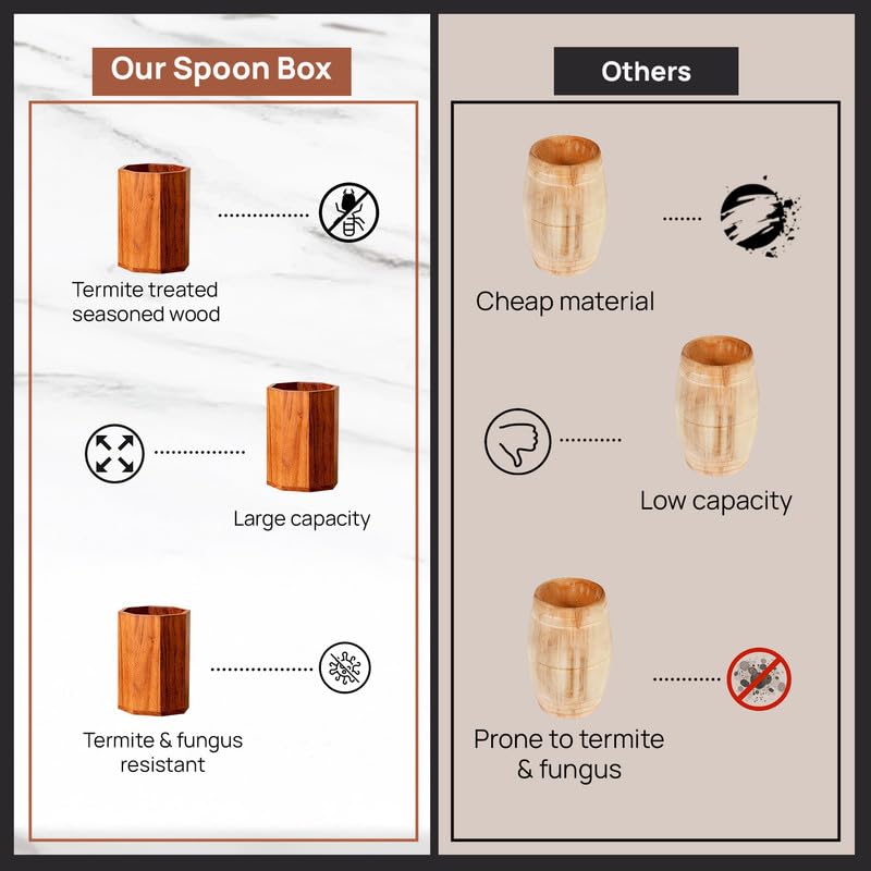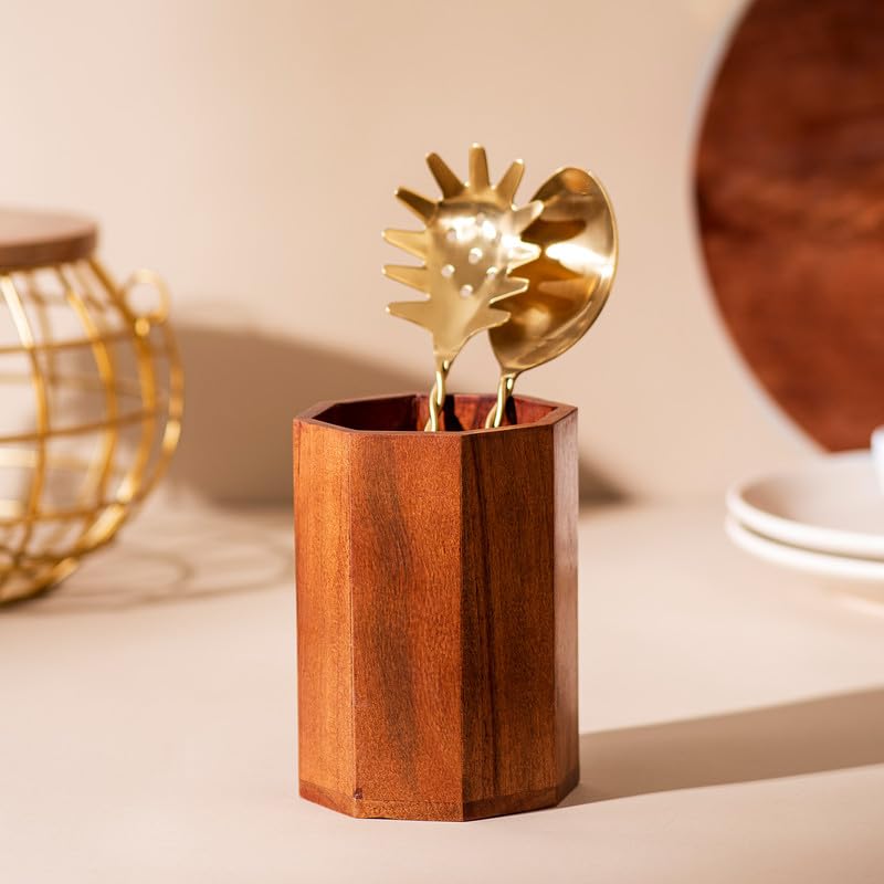 - [المادة] خشب الأكاسيا؛ [الأبعاد] 4.5 طول × 4.5 عرض × 6.5 ارتفاع انش [حجم المجموعة] حامل ملعقة واحد [المنشأ] صنع بفخر في الهند