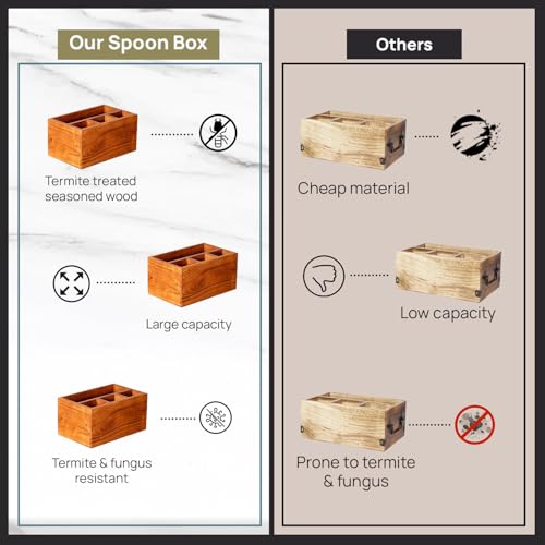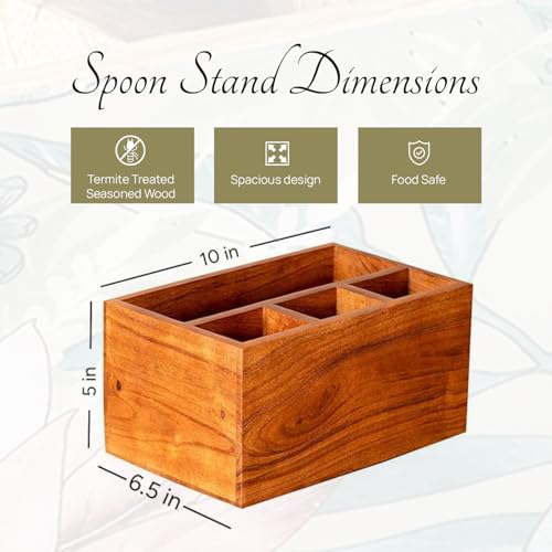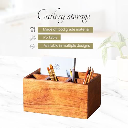 nestroots - نست روتس حامل ملاعق للمطبخ | ادوات مائدة لطاولة الطعام | منظم تخزين خشبي مع 4 اقسام خشب اكاسيا