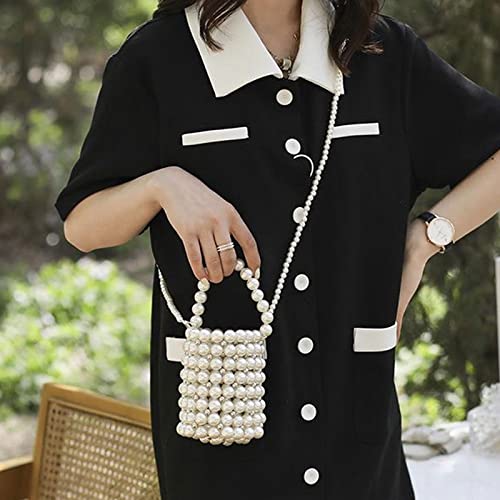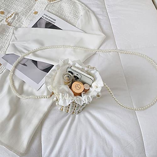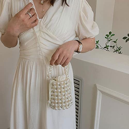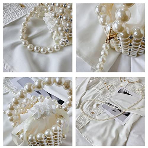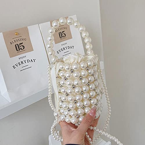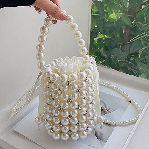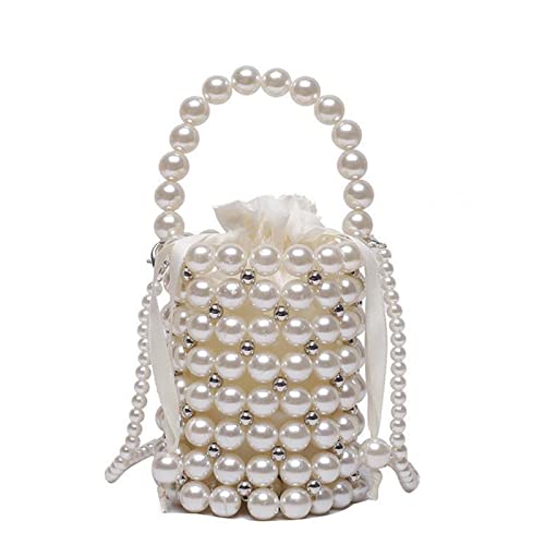 NETFEN - شنطة يد نسائية مزينة باللؤلؤ الابيض مع سلسلة داخلية قابلة للفصل من نيتفن لون أبيض
