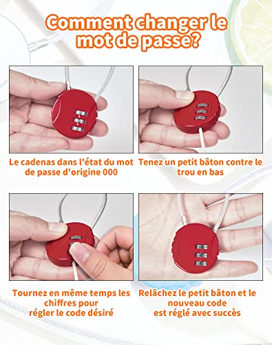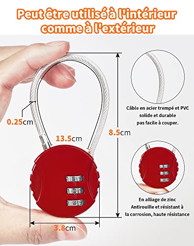 NETONDA - قفل شنط السفر مكون من 3 أرقام، قفل كابل صغير برمز رقم، قفل سلكي لشنط السفر للسفر من نيتوندا