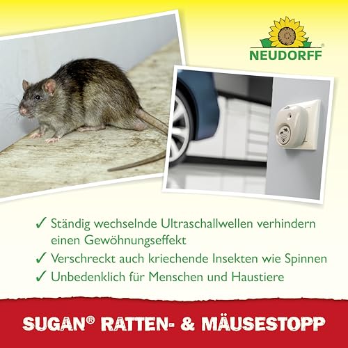 Neudorff - جهاز ايقاف الفئران والجرذان من نودورف 30 متر مربع، جهاز بالموجات فوق الصوتية للاستخدام الداخلي ضد الفئران والجرذان - ابيض