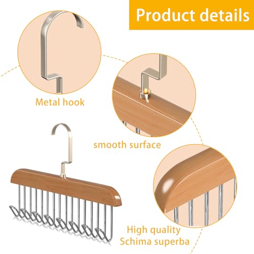 NEUSID - شماعة أحزمة للخزانة، خطافات متعددة الوظائف مانعة للانزلاق، علاقات موفرة للمساحة مع 8 خطافات، منظم تخزين خشبي معلق للخزانة للأوشحة وحمالات الصدر وربطات الشعر وملابس السباحة، من نيوسيد، 2 قطعة