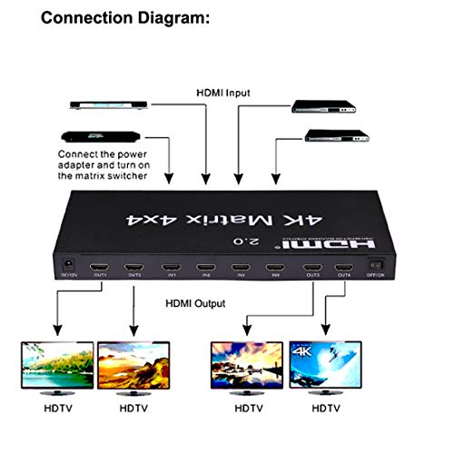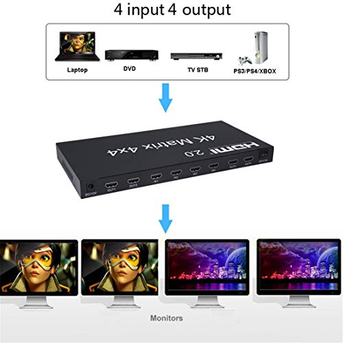 Neutral - محول مقسم بـ 4 مداخل و4 مخارج للتبديل بينهما 2.0 HDMI ماتريكس 4x4، 4K 60Hz 1080p (RGB/YUV 4:4:4) موزع التبديل 4 مداخل 4 مخارج RS232 EDID من ناتشورال (2.0 HDMI 4x4 مصفوفة)