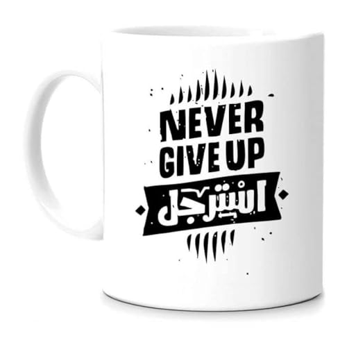 Al Adham - مج بتصميم عربي بعبارة Never Give Up، بورسلين، 1.0 ml، أبيض