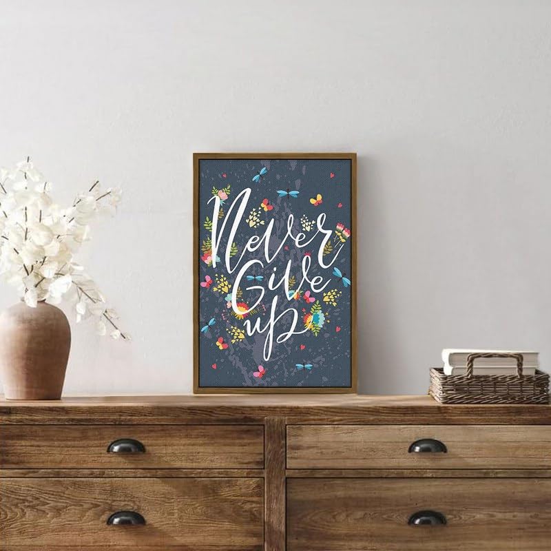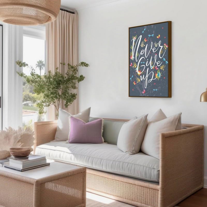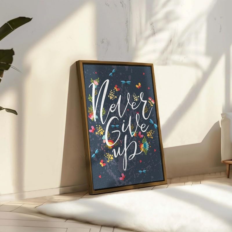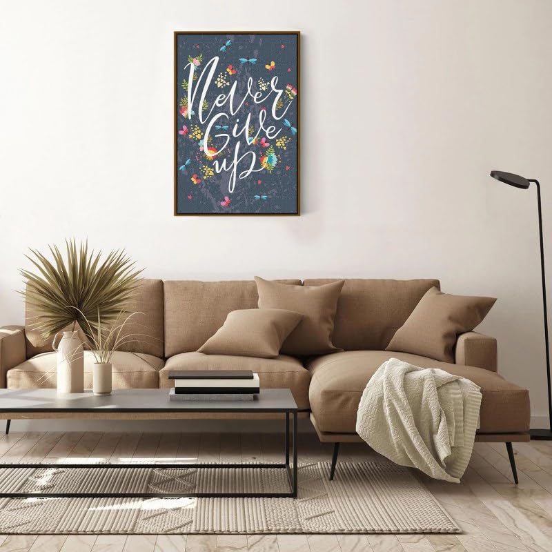 Home Gallery - لوحة فنية مؤطرة لديكور الحائط مزينة بعبارة تحفيزية «Never Give up»، 1.2 متر × 80 سم