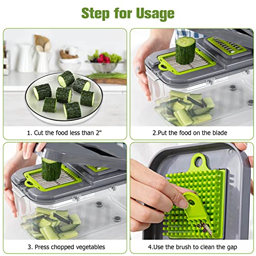 - موفرة للوقت: مفرمة خضروات متعددة الوظائف تساعد في تقليل وقت التحضير مع الشفرات التقليدية لتقطيع الطماطم والفلفل والجزر والبنجر والخيار والبصل والثوم، مما يوفر وقتك في الأعمال المنزلية. هدية مثالية لزوجتك وأمك ومحبي الطبخ. صندوق تخزين بسعة كبيرة، يمكن استخدامه لتخزين الطعام في الثلاجة.