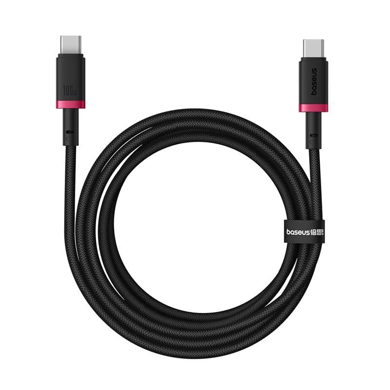 Baseus - كابل شحن سريع بتصميم 2025 بقوة 100 وات وطول 2 متر PD3.1 QC4.0 فائق السرعة من USB-C إلى USB-C لسلسلة آبل آيفون 16 و15 برو ماكس وماك بوك واي باد برو اير وايربودز وشاشة آبل برو من باسيوس (لون أحمر)
