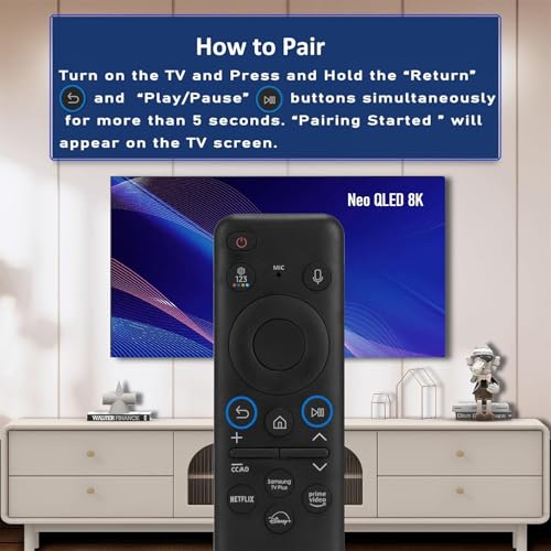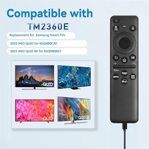 - جهاز تحكم صوتي TM2360E BN59-01432A متوافق مع تلفزيونات سامسونج نيو كيو ليد 4K LED، مناسب لتلفزيون فريم كريستال الترا اتش دي الذكي، يعمل مع: موديلات 2017 - 2025، BN59-01432D.