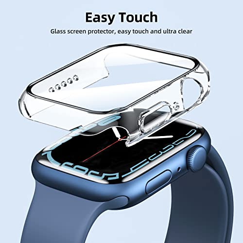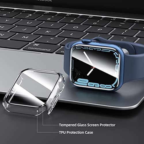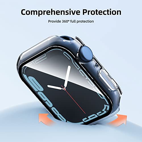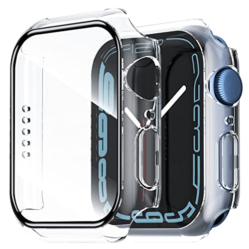 - تحتوي المجموعة على قطعتين من الحافظة الشفافة مع شاشة حماية مدمجة من الزجاج المقوى لساعة ابل 41 ملم سلسلة 7. يوفر حماية كاملة.
