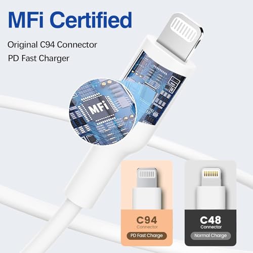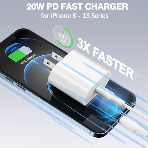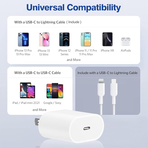Generic - شاحن سريع جديد معتمد 20 وات PD USB C مع كابل نوع إلى لايتنينج 13/13 برو ماكس/13 برو/12/12 ماكس/11/11 برو/XS/XR/X/SE ، سماعات - أبيض