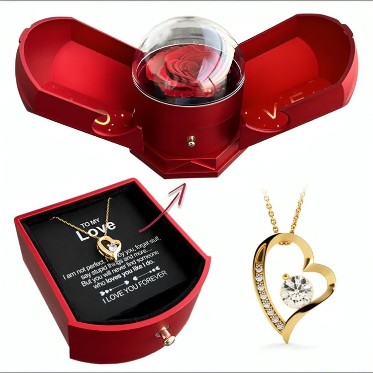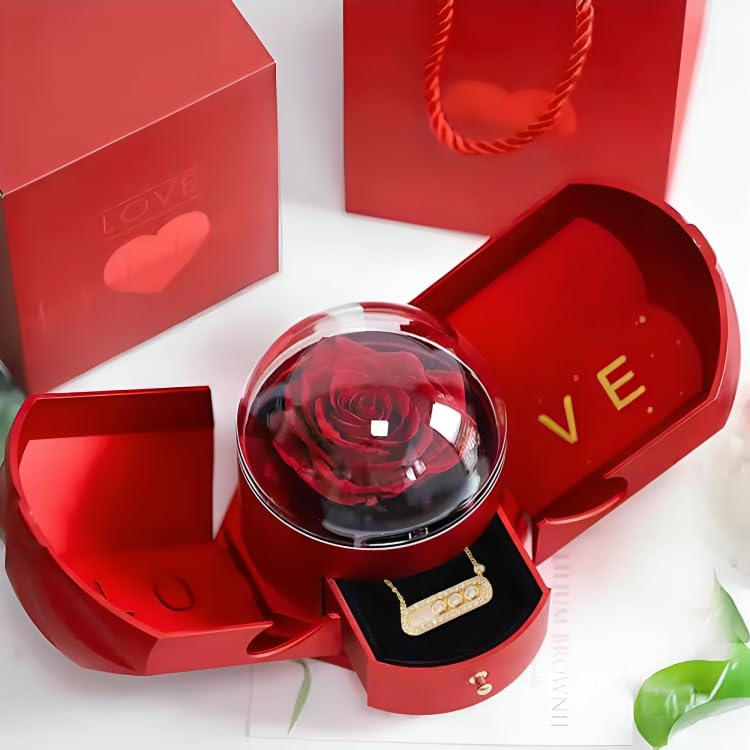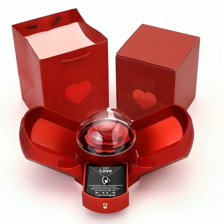 Generic - صندوق هدايا وردة مزدوج الفتح مبتكر وجديد، صندوق مجوهرات وردة من نوع الدرج، تغليف قلادة وخاتم لعيد الحب و عيد الميلاد و اي مناسبة.