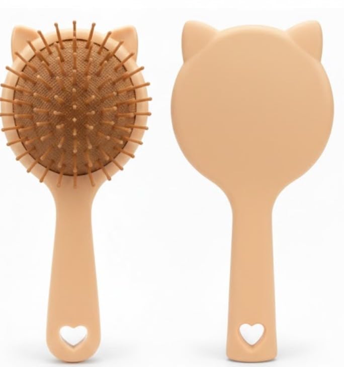 Generic - فرشاة شعر جديدة لطيفة خفيفة بشعيرات ناعمة مضادة للكهرباء الساكنة، مشط تدليك مع وسادة هوائية للاطفال البنات والاولاد (عبوة من قطعة واحدة) - بني