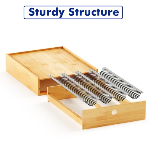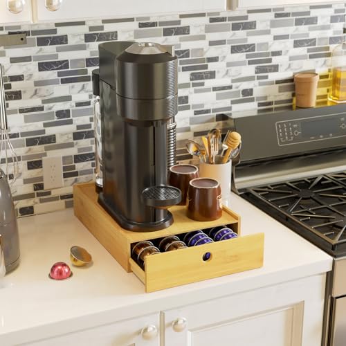 New England Stories - حامل كبسولات القهوة متوافق مع كبسولات نسبريسو فيرتو من نيو انجلاند ستوري، درج تخزين كبسولات لسطح المكتب مناسب لعدد 40 كبسولة كبيرة أو 52 كبسولة فيرتولين صغيرة، بامبو