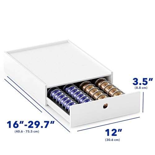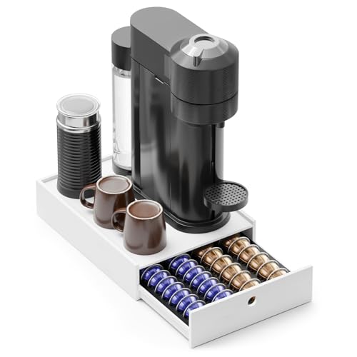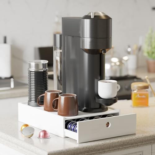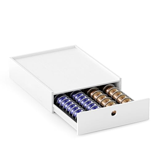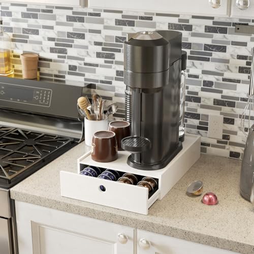 New England Stories - نيو انجلاند ستوري حامل كبسولات القهوة متوافق مع كبسولات نسبريسو فيرتو، درج تخزين كبسولات سطح المكتب متوافق مع 40 كبسولة كبيرة أو 52 كبسولة فيرتولين صغيرة - (أبيض)