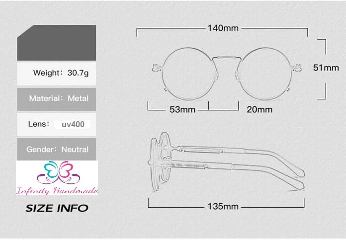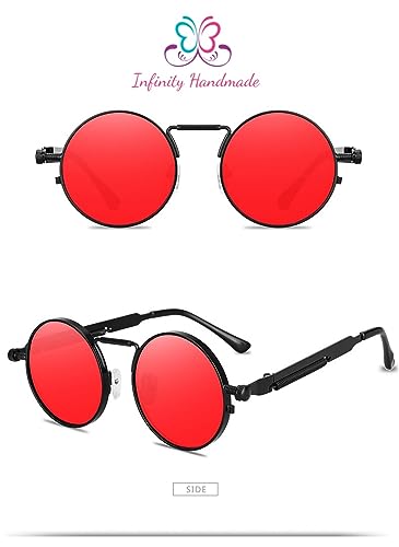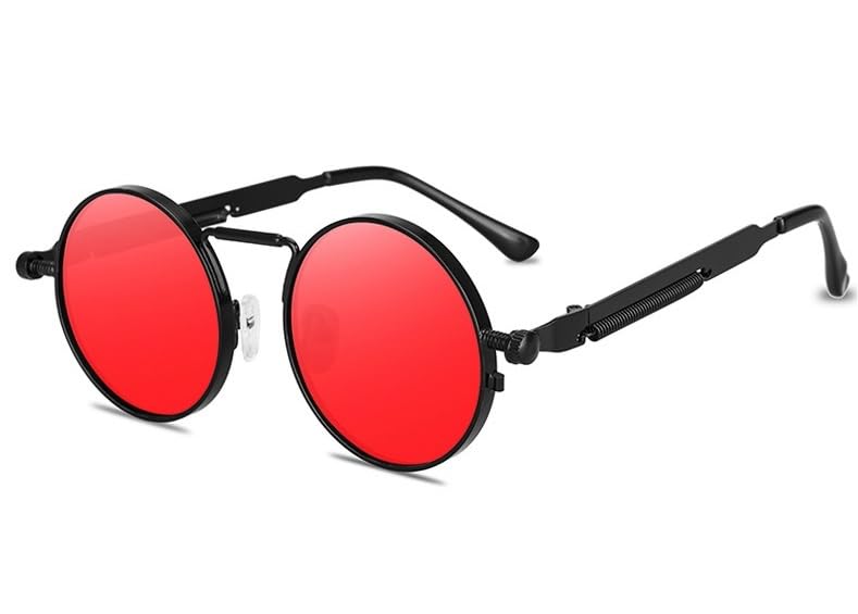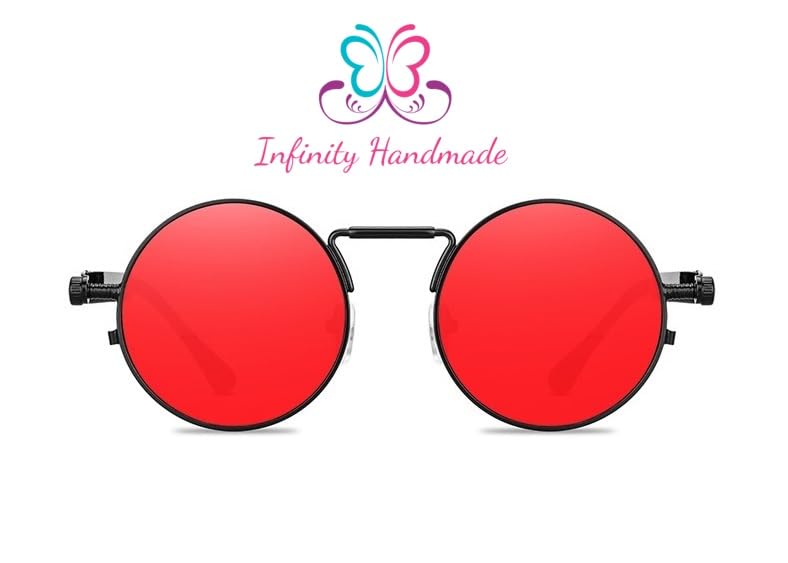 Generic - نظارات شمسية بتصميم بانك جديد للرجال باطار معدني دائري كلاسيكي للنساء عصرية للحماية من الاشعة فوق البنفسجية 400 بائع حصري انفينيتي مصنوع يدويا أحمر