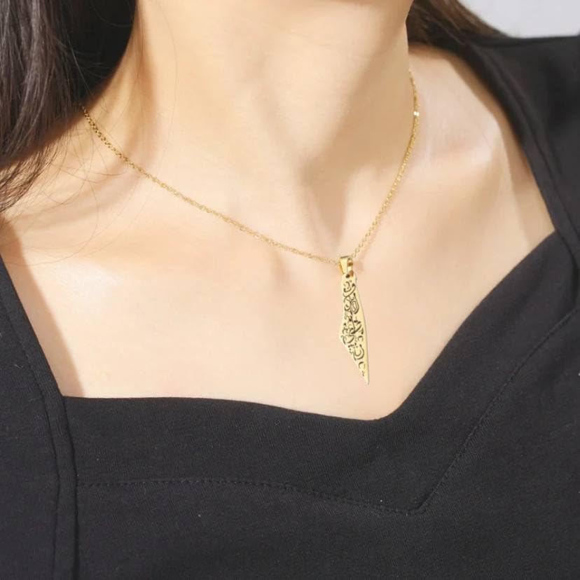 Generic - قلادة بسيطة جديدة من الستيل بدلاية على شكل خريطة فلسطين للنساء والرجال، مجوهرات عربية هدية