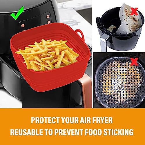SELLD - بطانة قلاية سيليكون مربعة مقاومة للحرارة – مناسبة للقلاية الهوائية والفرن والميكروويف – سهلة التنظيف ومطوية – خالية من مادة بيسفينول أ – قابلة لإعادة الاستخدام، للطهي والخبز، مقاس 20.3 سم
