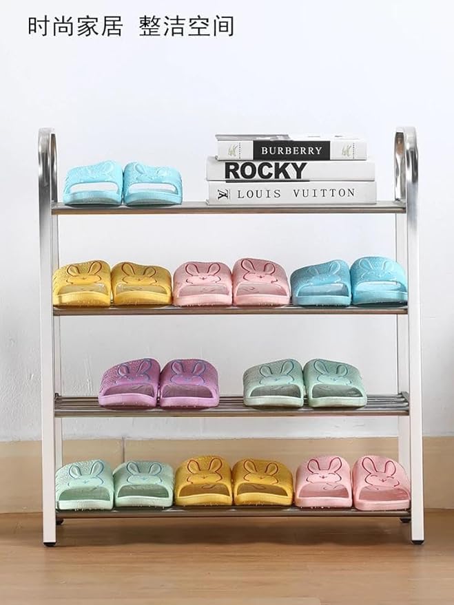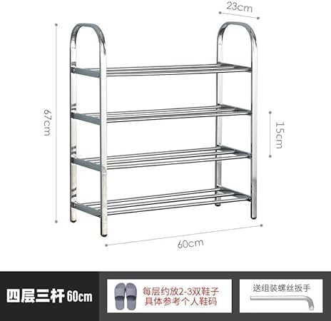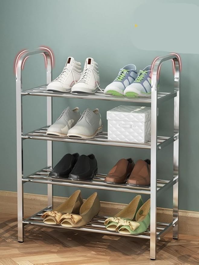 Generic - رف احذية جديد من الستانلس ستيل متعدد الطبقات بتصميم بسيط مناسب للاماكن الداخلية والخزانة والباب والسكن الجامعي - 4 طبقات
