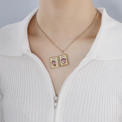 Generic - سلسلة الذكريات بشكلها الجديد على شكل كتاب صغير به مكان لاضافة صورتين من الداخل من الستانلس ستيل للنساء والبنات مناسبة للارتداء اليومي