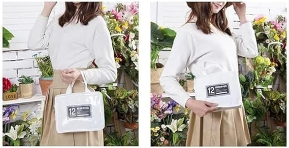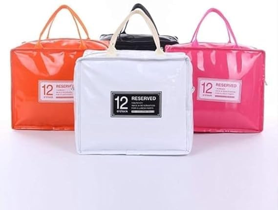 Generic - لانش باج مقاومة للماء مصنوعة من بلاستيك بي في سي للنساء، شنطة محمولة وعملية بتصميم مخطط، معزولة حراريًا ومناسبة للنزهات - متعددة الألوان