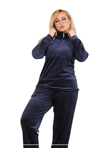 Generic - بيجامة قطيفة من مجموعة الشتاء مكونة من جاكيت بأكمام طويلة بسوستة وبنطلون، مريحة وفريدة بمقاسات من لارج L حتى 2 اكس لارج 2XL، طقم من قطعتين