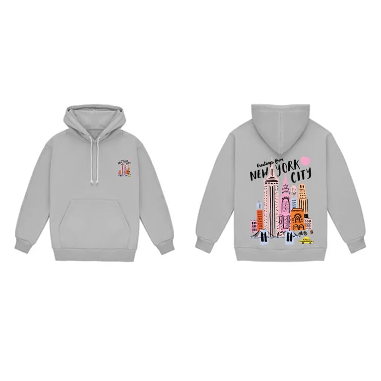 Generic - هودي مدينة نيويورك، رمادي، طباعة جرافيكية، سويت شيرت بلوفر للجنسين مع جيب كانجارو مقاس (M)