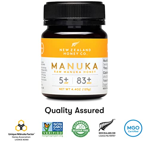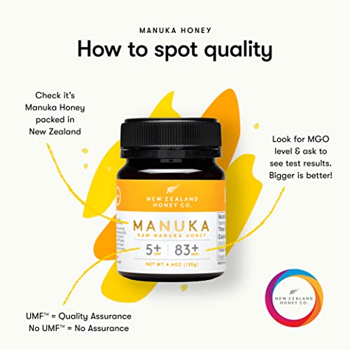 NEW ZEALAND HONEY CO - شركة عسل نيوزيلندا هوني كو عسل مانوكا الخام UMF 5+ | ام جي او 83+، معتمد من UMF / 123 مل