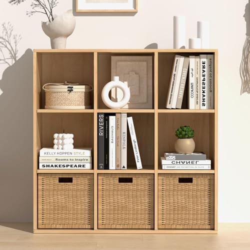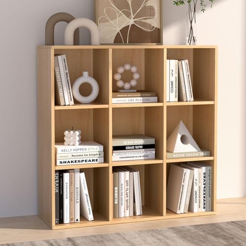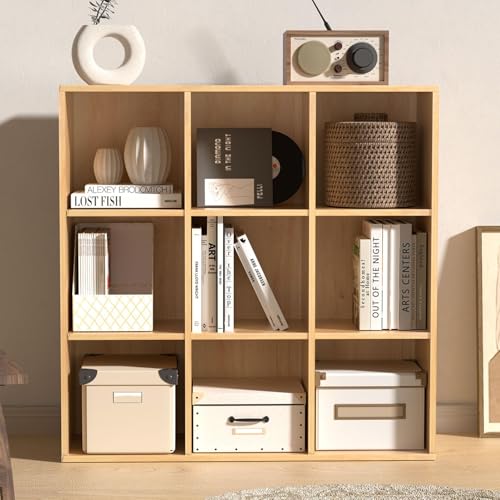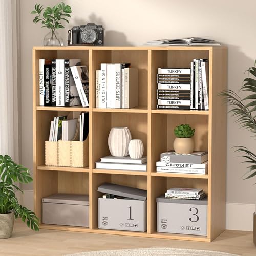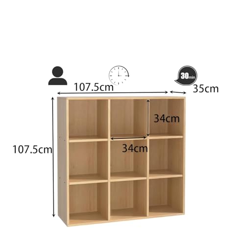 NewBeth - خزانة كتب من خشب البلوط مع 9 مكعبات من نيوبيث، رف مكتب خشبي، رف مكعب، رف قائم لغرفة المعيشة وغرفة النوم والمكتب وغرفة الاطفال (بلوط، 9 مساحات تخزين (35 عمق × 107.5 عرض × 107.5 سم ارتفاع))