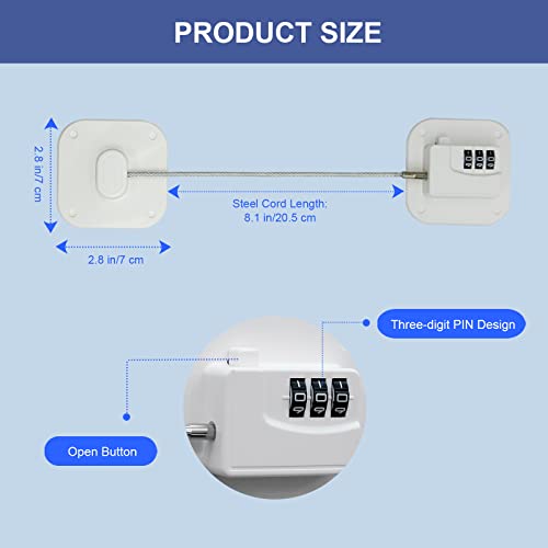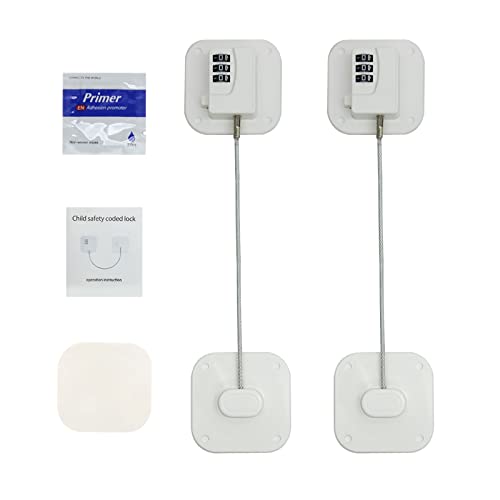 NewBinn - قفل ثلاجة بدون حفر مع رمز للأطفال دون سن 5 سنوات، مناسب للثلاجات والغسالات والدواليب ودواليب الملابس والتواليتات ومبردات المشروبات والنوافذ، قطعتين، أبيض
