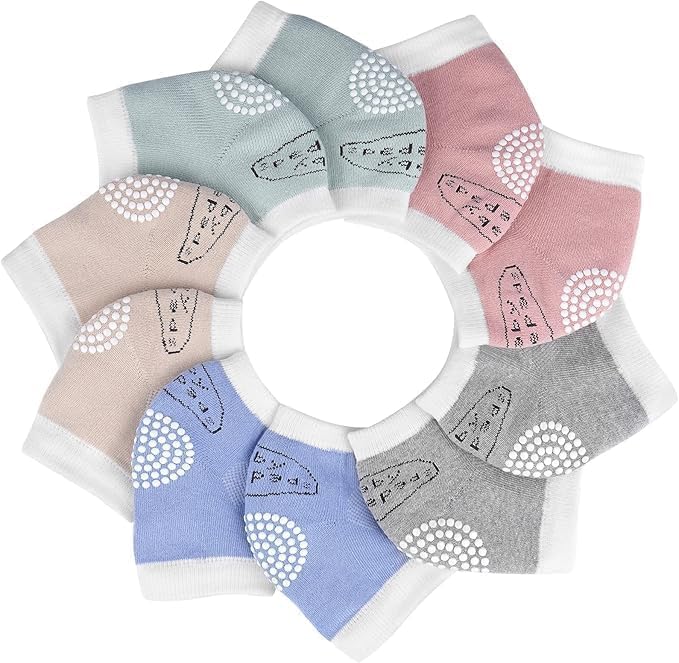 Generic - وسادات ركبة للأطفال حديثي الولادة (0-18 شهر) مصنوعة من القطن الناعم والتهوية الجيدة، بتصميم حيوانات لطيفة، سميكة ومضادة للانزلاق لحماية الركبة والكوع أثناء الزحف، مريحة وآمنة للجنسين