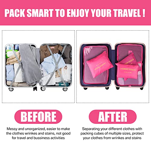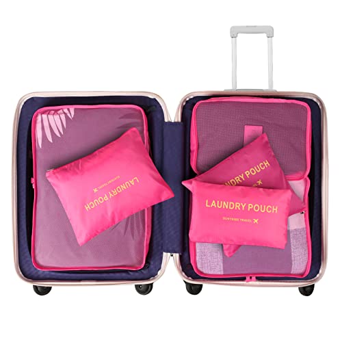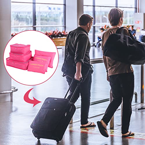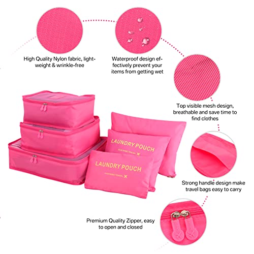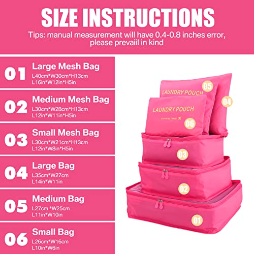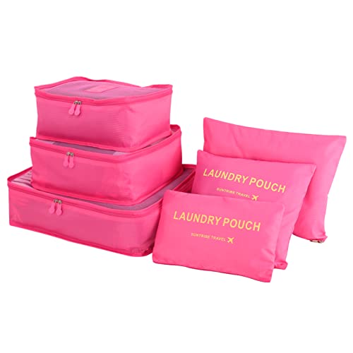 Neween - نوين مجموعة من 6 قطع من مكعبات التعبئة، منظمات تعبئة امتعة السفر، مكعبات تعبئة لحقائب السفر (احمر وردي)، نايلون