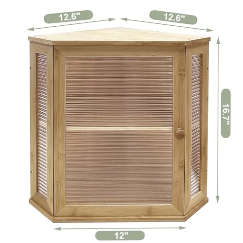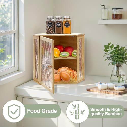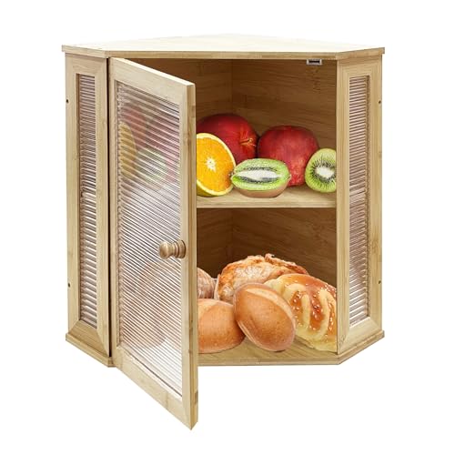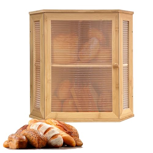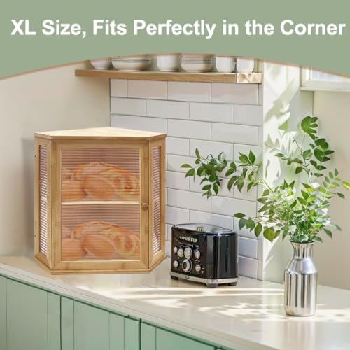 NewEle - صندوق خبز زاوية كبير جدًا - من الخيزران لأسطح المطبخ سعة كبيرة لتخزين وتنظيم الخبز في مع نافذة مموجة الاكريليك المموج بامبو