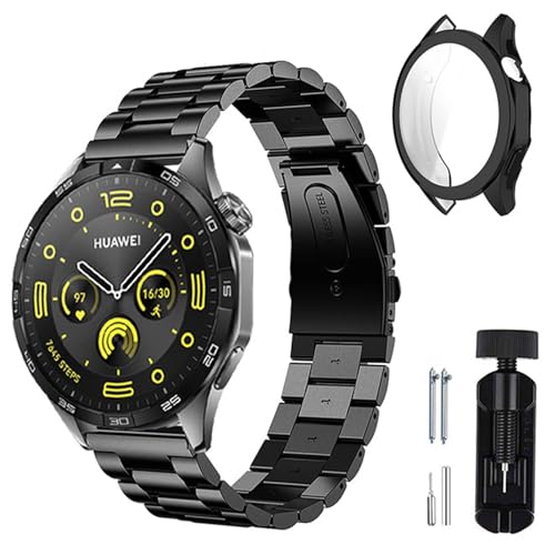 Newentor - نيوينتور سوار ساعة معدني من جي تي 4 مقاس 46 ملم متوافق مع ساعة هواوي جي تي 4 مقاس 46 ملم، سوار ساعة 22 ملم مع غطاء للساعة الذكية، اسود، 22 ملم