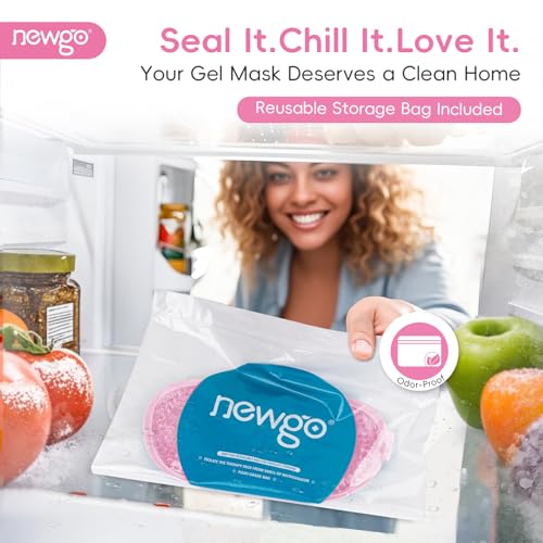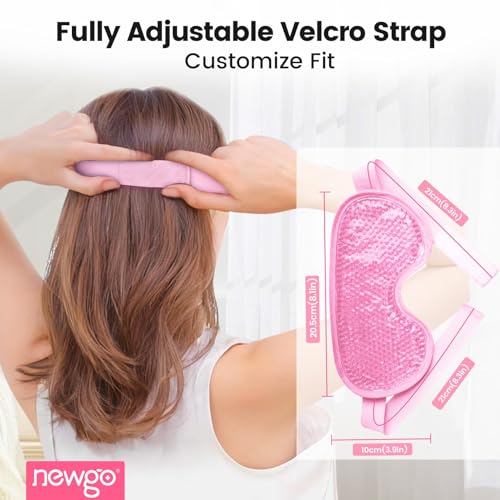 NEWGO - ماسك تبريد العين للعيون المنتفخة من نيوجو، ماسك جل علاجي ساخن وبارد قابل لإعادة الاستخدام للصداع النصفي والهالات السوداء والعيون الجافة والعيون المتورمة وآلام الجيوب الأنفية، وردي