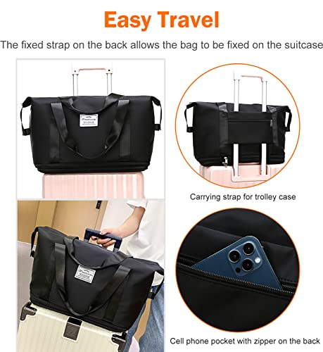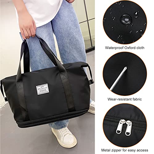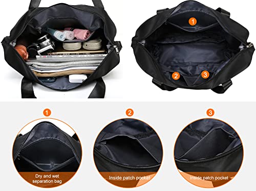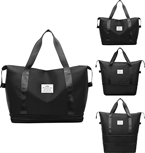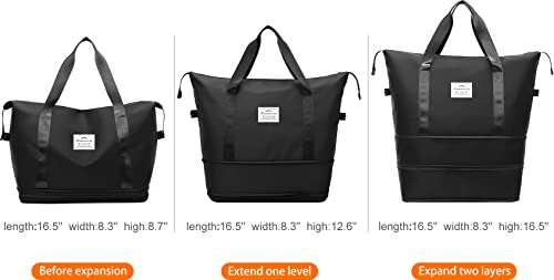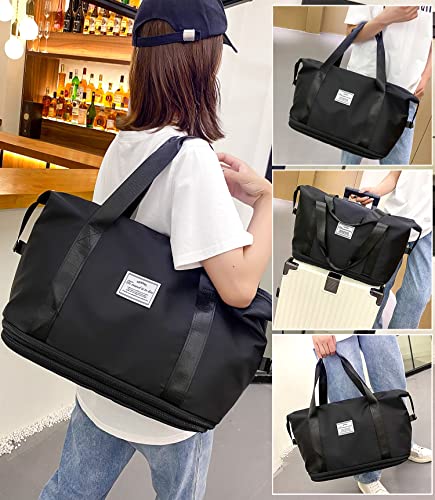 NEWIND - شنطة سفر قابلة للتوسعة من ستردينس، سعة كبيرة من القماش الخشن، تصميم رياضي للجيم وشنطة كتف للعطلات والسفريات القصيرة مع جيب للاغراض الرطبة، للنساء, أسود، نايلون